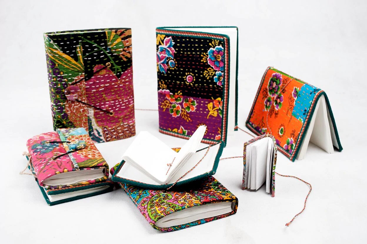 This is a fabric covered notebook, the fabric we have used is called as Kantha Fabric. This type of fabric is completely recycled from old cotton fabric waste. The stitching on the fabric is called as Kanta stitching. We have used 96 pages of recycled handmade paper inside. It can be customized with a lock closure or simple cotton string closure.
